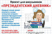 В РЕСПУБЛИКЕ ТАТАРСТАН объявлен республиканский конкурс на самую высокую успеваемость за право получить лично из рук Президента именной «Президентский дневник» с автографом для школьника и диплом от министра образования и науки Республики Татарстан для классного руководителя.