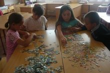 Ребята увлеченно занимались собиранием пазлов. При этом у ребят вырабатывается терпение, усидчивость, внимание.