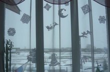 В Чув.Чебоксарской школе препраздничное настроение. Фойе школы, окна украшены мишурой, снежинками, героями сказочных произведений.
