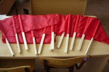 На уроках труда шьют флажки для парада 9 мая
