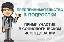 15 апреля 2015 года стартовало всероссийское исследование «Подростки и предпринимательство». Исследование проходит на сайте www.bizteen.ru. Цели исследования – определить направления, способствующие выбору подростками карьеры предпринимателя, оценить информационное пространство в отношении предпринимательства в регионах и региональные программы развития молодежного предпринимательства. В рамках исследования школьникам будут задаваться вопросы об их отношении и их ближайшего окружения к предпринимательству, причинах выбора предпринимательского пути или работы по найму, оценку региональных предпринимателей и т.д. Школьники смогут ответить на вопросы исследования до 26 мая 2015 года. Результаты исследования будут опубликованы 20 июня 2015 года.