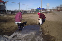 Сегодня коллектив МБДОУ "Черемуховского детского сада "Березка" наводили порядок на территории,собирали мусор и раскидывали снег.