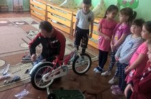 Нашему детскому саду сделали большой подарок "Велосипед детям", Чистопольское ГИБДД, за 1 место в Республиканском конкурсе "Зеленый огонек". Пока папа Нестеровой Даши собирал велосипед, дети с большим воодушевлением ждали своего часа, чтобы покататься на велосипеде.