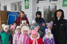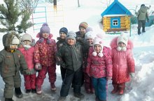 Дети очень любят гулять на улице зимой, при помогать сторожу согребать снег. Артем учит детей, как правильно держать лопату.