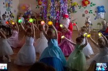 Дети старшей разновозрастной группы пришли на представление нарядные, веселые в предвкушении праздника. И их надежды оправдались. Дети, участвовавшие в новогоднем представлении, проявили себя хорошими артистами, показав все свое творческое мастерство, артистизм, задор и организаторские способности. Им пришлось перевоплотиться в Мачеху, и двух ее дочерей. А золушка, ведь именно снегурочку мачеха превращает в Золушку, и заставляет ее работать с раннего утра до позднего вечера. С самого начала представления сказочные герои увлекли детей в волшебный мир сказки. Дети сочувствовали положительным героям и стремились все вместе им помочь, охотно участвуя в играх и забавах. Сюрпризом для родителей стал танец девочек с горящими шариками -фонариками:, «Танец льдинок». С появление Деда Мороза начался настоящий праздник с песнями и танцами, хороводами вокруг елки.