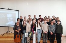 Встреча была организована и проведена сотрудниками Детской школы искусства. Они познакомили наших учеников с творчеством поэтов-бардов: Б.Окуджавы, Ю.Визбора, О.Митяева. А исполнение их песен под сопровождение гитары вызвало живой интерес у ребят.