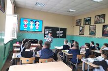 Во время урока дети просмотрели видеокомикс, поиграли, спели караоке-песню и посмотрели новый мультфильм. Затем было проведено практическое занятие: Регулируемые и нерегулируемые перекрёстки.