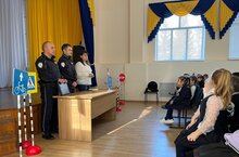 Инспекторы движения провели беседу о правилах поведения на дороге во время предстоящих каникул, а также раздали ребятам памятки и светоотражающие значки.