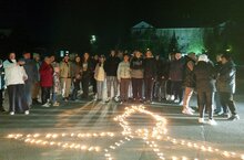 На площади перед мемориалом выложили свечами очертания Вечного огня и слово Победа. Когда их зажгли, то эти теплые огоньки в ночи стали свечами памяти по тем, кто погиб во время самой страшной войны ХХ века. Их память собравшиеся почтили минутой молчания.