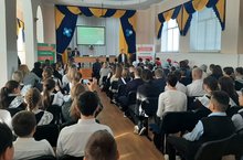Председатель Совета регинонального отделения Общероссийского общественно- государственного движения детей и молодежи «Движение первых» Республики Татарстан Тимур Джаудатович|Сулеймановым и Глава Новошешминского муниципального района Вячеслав Михайлович Козлов провели встречу с обучающимися Новошешминского муниципального района РТ.