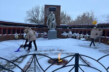 Юнармейцы гиназии приняли участие в благоустройстве памятника. Очистили территорию от снега.