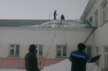 1.02.2016г. мужская часть коллектива школы в целях безопасности детей произвела очитску кровли от снега.