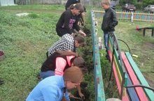 13 июня 2014г. ребята из трудового лагеря продолжают свою работу на пришкольном участке. Они поливают капусту и томаты, пропалывают лук, морковь и свеклу, следят за клумбами, ухаживают за садом.