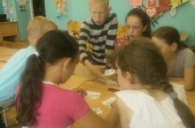 Сегодня в пришкольном лагере "Факел" день назывался "По следам Робинзона". Воспитатели сделали план - маршрут по станциям . Дети разделились на две команды: команда «Солнышко» и команда «Капельки». На каждой станции выполняя задания приближались к цели. Победила дружба.