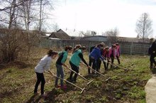 Учащиеся нашей школы вышли на субботник. Убрались на территории "Парка Победы", вокруг школы, а также работали на пришкольном участке.