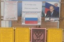 12.12.2016г. школьный библиотекарь Козлова Л.А. с советом старшеклассников оформили обзорную выставку на тему "12 декабря - День Конституции РФ".