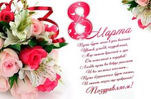 Чудный праздник есть на свете, день добра и красоты, пусть у женщин на планете все исполнятся мечты! Пусть вам солнце улыбнется, упадут цветы к ногам, море счастья разольется, и любовь подарят вам! 07.03.2024