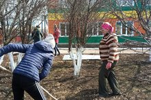 Средник на территории детского сада, уборка сухой листвы, сбор камней 08.04.2020