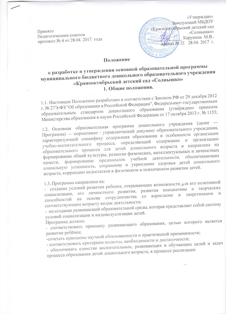 Положения о разработки и утверждение ООП