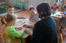 Воспитатель старшей группы Назарова Н.В. проводит индивидуальную работу с детьми по УМК.