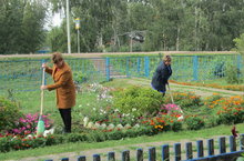 Коллектив детского сада проводил работы по уборке прилежащего участка, цветников, игровых участков.