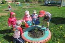 Провели с детьми младшей группы труд в природе полив цветов на клумбе.