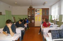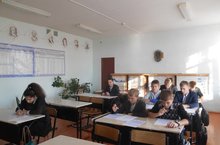 Учащиеся 9 класса сдают пробный экзамен.