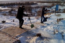 Сегодня работники школы ходили на Родник и очистили дорожки от снега, убрали мусор.