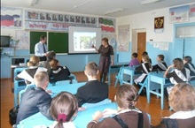 На первой фотографии Зайцев И.П. и директор школы Трошина Е.А. провлдят совместный урок.