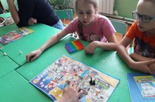 14 день в пришкольном лагере был посвящён профилактике дорожного травматизма. Ребята поиграли в настольную игру "Мы шагаем по дороге", игры "Учим дорожные знаки" и "Великолепная пятёрка".