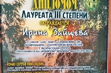 Дипломом Лауреата 3 степени награждается Зайцева Ирина в номинации "Патриотическая песня"