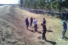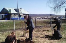 Учащиеся восьмого класса посадили на территории школы рябину.