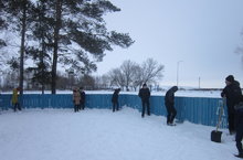 Учащиеся старших классов под руководством классных руководителей и учителя физкультуры ежедневно занимаются уплотнением снега для заливки катка.