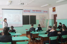 С учащимися 5-6 классов в к уголке боевой славы проведён классный час на тему: "Помним, гордимся!". Учащиеся слушали сообщение своих одноклассников о родственниках погибших на фронтах Великой Отечественной Войны, а так же о героях-земляках.