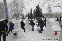 Строительство снежного городка силами учащихся и учителей продолжается.