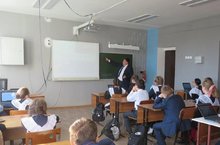Сегодня у нас в школе был заместитель начальника главного управления ветеренарии Кабмин РТ Нугуманов Ильдар Нургалиевич, который для учащихся 5- 8 классов провёл "Урок цифры".
