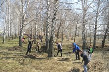 Сегодня учащиеся, учителя и технический персонал вышли на всероссийский субботник. Они очистили парк от сухой травы, веток и другого мусора.