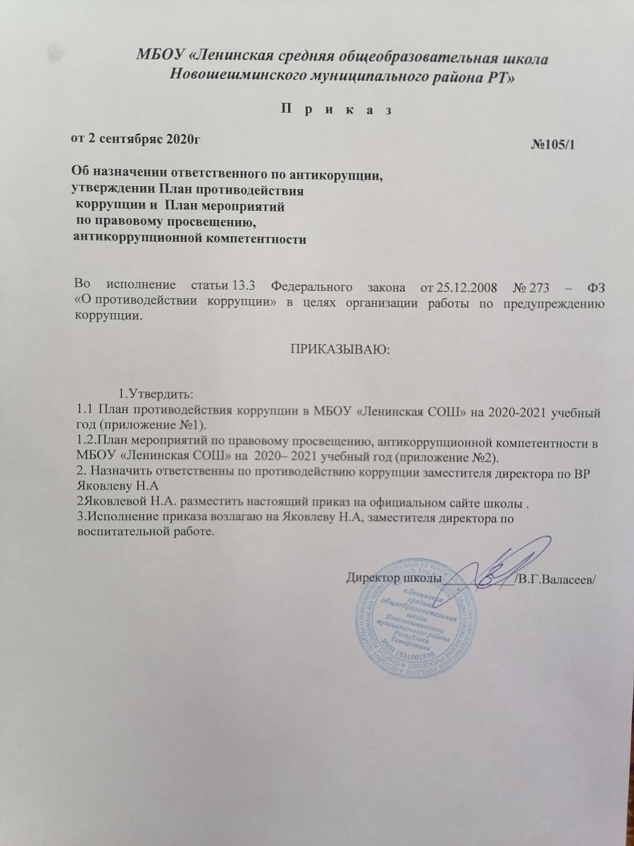 Приказ об назначении ответственного по антикоррупци