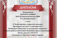 Участие в Международном интернет конкусе "Солнечный свет" Хорьков Даниил 02.02.2017