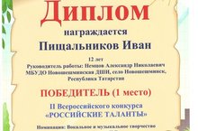 Участие II Всероссийском конкурсе "Российские таланты" Пищальникова Ивана 04.02.2017