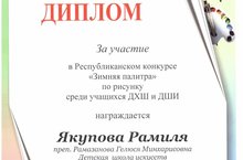 22 января педагоги и учащиеся ДШИ приняли участие в награждение Республиканского интернет конкурса самодеятельных художников и мастеров ДПИ "Как прекрасен этот мир!". Победителями конкурса художественного отделения стали Якупова Рамиля диплом I степени (педагог Рамазанова Г.М.), Пьянзина Евгения диплом I степени, Леонова Алина диплом III степени (педагог Леонова Л.И.). Поздравляем наших победителей! Удачи и новых побед!