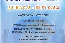 Учащийся музыкального отделения по специальности фортепиано Ситдиков Салават принял участие в Международном конкурсе искусств "Первые ласточки" и стал Лауреатом I степени в номинации:инструментальная музыка, возрастная категория 14-15 лет. Поздравляем Салавата и его педагога Кузнецову Е.Н. с достойной победой и желаем дальнейших творческих успехов!