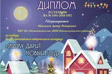Ученик 1 класса аккордеона Максимов Артур принял участие во Всероссийском творческом конкурсе "Сказку дарит новый год" с конкурсной работой М.Красева "Маленькая елочка" и получил Диплом II степени. Педагог Минаева М.Н. награждена Сертификатом и Благодарственным письмом организаторов конкурса.