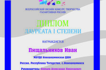 Всероссийский онлайн конкурс творчества "Талантливая Россия" Пищальников Иван Лауреат I степени 14.03.2017