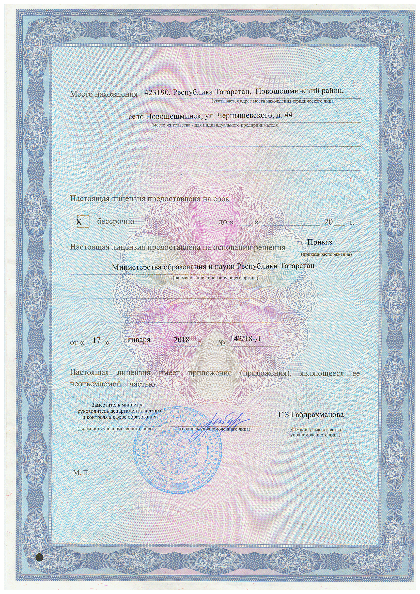 лицензия МБУДО "Новошешминская ДШИ Новошешминского муниципального района Республики Татарстан"2018.bmp