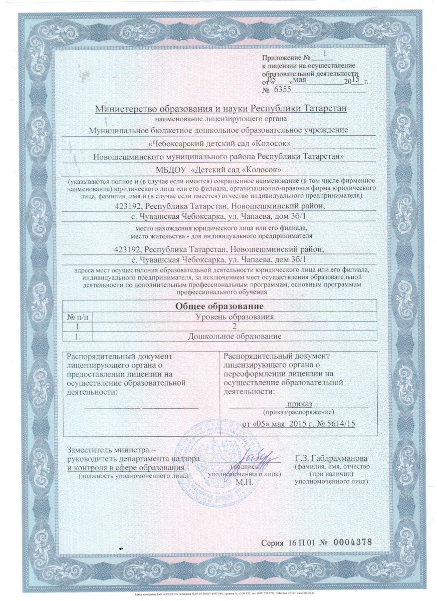 Приложение № 1к лицензии на осуществление обрзовательной деятельности от 5 мая 2015 г № 6355.docx