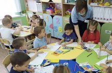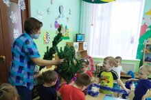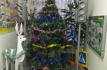 Начинается новогоднее оформление детского сада. Самые маленькие активно помогают воспитателю Олесе Николаевне.