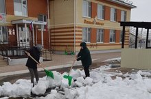 Ежедневно сотрудники детского сада проводят уборку территории от снега.