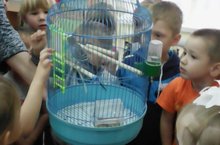 "Живой уголок" 14.11.2017 Живой уголок нашего детского сада пополнился новым питомцем волнистым попугаем. Попугая и клетку подарил папа наших воспитанников Даутов Алмаз. Дети очень рады новому попугайчику.