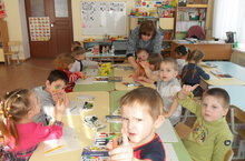 В группе "Солнышко" дети сделали своими руками яркие весенние букеты в подарок своим мамам, которые они смастерили из цветной бумаги, при помощи ножниц и клеевого карандаша.